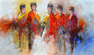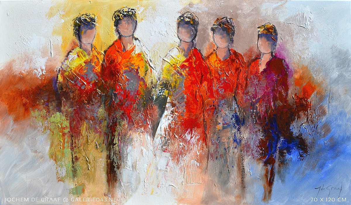 Jochem de Graaf (1954) woont en werkt in de omgeving van Amersfoort. Schilderen is al sinds jaren zijn grote passie. Jochem is autodidact en werd in het begin van zijn schildersloopbaan vooral geïnspireerd door 'mensen' die hij abstract neerzette op zijn doeken. Zijn manier van werken en de materialen die hij voor zijn schilderijen gebruikt geven zijn werk een extra dimensie. Met name het reliëf creëert veel diepte dat bij de inval van licht prachtige schaduwen veroorzaakt. Nog steeds zijn 'mensen' in Jochem's werk een belangrijk thema, maar ook bloemen zijn langzaam maar zeker niet meer weg te denken in zijn oeuvre. Of het nu veldbloemen, Mannequins, anemonen of zonnebloemen zijn: elke variant wordt daar Jochem moeiteloos en vlot vertaald naar bonte of natuurlijk gekleurde schilderijen. Ook hier zijn de door hem gebruikte technieken en materialen (verdikkingspasta, plamuurmes, dik penseel en spatel) de basis van een olieverfschilderij dat spreekwoordelijk 'leeft'.