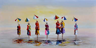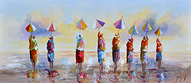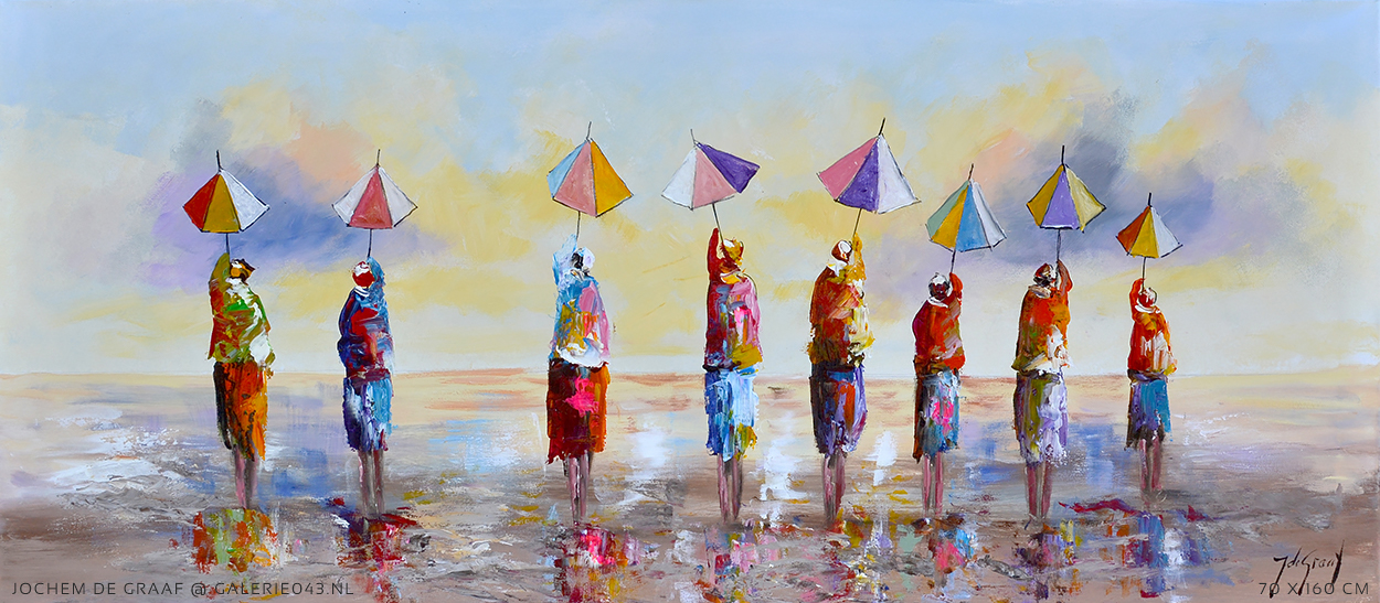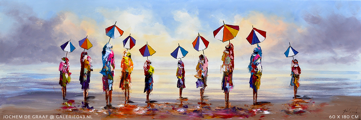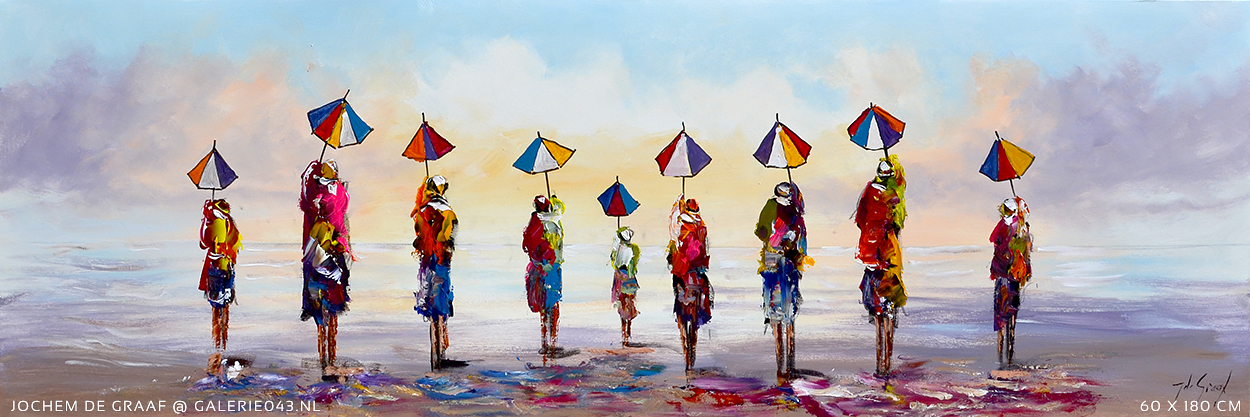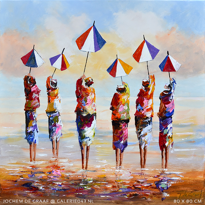 Jochem de Graaf (1954) woont en werkt in de omgeving van Amersfoort. Schilderen is al sinds jaren zijn grote passie. Jochem is autodidact en werd in het begin van zijn schildersloopbaan vooral geïnspireerd door 'mensen' die hij abstract neerzette op zijn doeken. Zijn manier van werken en de materialen die hij voor zijn schilderijen gebruikt geven zijn werk een extra dimensie. Met name het reliëf creëert veel diepte dat bij de inval van licht prachtige schaduwen veroorzaakt. Nog steeds zijn 'mensen' in Jochem's werk een belangrijk thema, maar ook bloemen zijn langzaam maar zeker niet meer weg te denken in zijn oeuvre. Of het nu veldbloemen, Mannequins, anemonen of zonnebloemen zijn: elke variant wordt daar Jochem moeiteloos en vlot vertaald naar bonte of natuurlijk gekleurde schilderijen. Ook hier zijn de door hem gebruikte technieken en materialen (verdikkingspasta, plamuurmes, dik penseel en spatel) de basis van een olieverfschilderij dat spreekwoordelijk 'leeft'.
