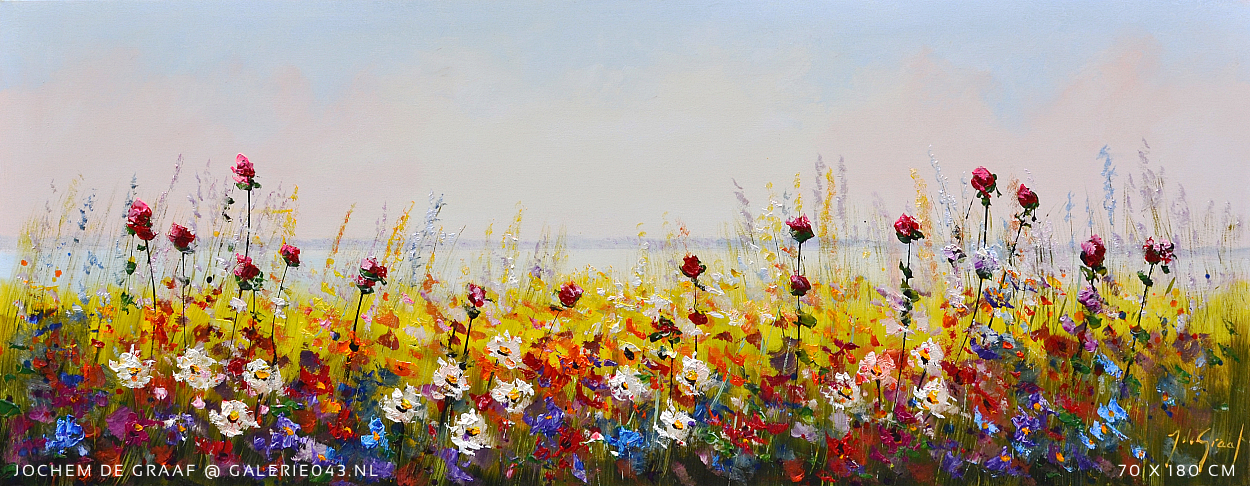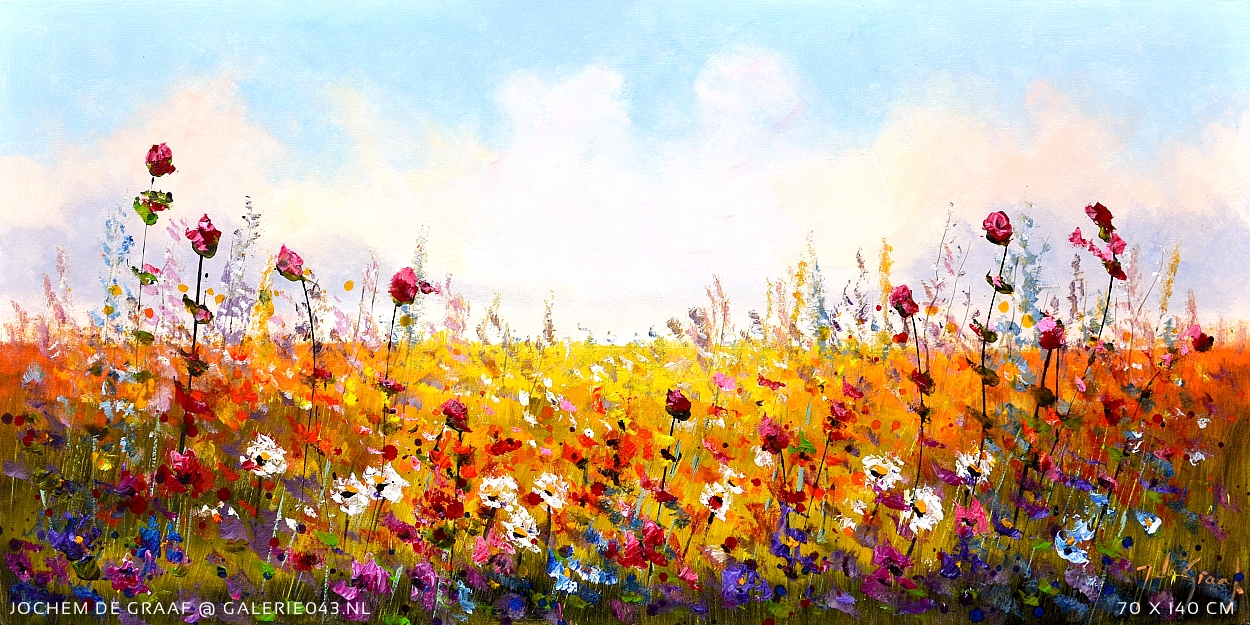 | NL | * 1954 Jochem de Graaf (1954) woont en werkt in de omgeving van Amersfoort. Schilderen is al sinds jaren zijn grote passie. Jochem is autodidact en werd in het begin van zijn schildersloopbaan vooral geïnspireerd door 'mensen' die hij abstract neerzette op zijn doeken. Zijn manier van werken en de materialen die hij voor zijn schilderijen gebruikt geven zijn werk een extra dimensie. Met name het reliëf creëert veel diepte dat bij de inval van licht prachtige schaduwen veroorzaakt. Nog steeds zijn 'mensen' in Jochem's werk een belangrijk thema, maar ook bloemen zijn langzaam maar zeker niet meer weg te denken in zijn oeuvre. Of het nu veldbloemen, mannequins, anemonen of zonnebloemen zijn: elke variant wordt daar Jochem moeiteloos en vlot vertaald naar bonte of natuurlijk gekleurde schilderijen. Ook hier zijn de door hem gebruikte technieken en materialen (verdikkingspasta, plamuurmes, dik penseel en spatel) de basis van een olieverfschilderij dat spreekwoordelijk 'leeft'. Werken van Jochem de Graaf worden door veel liefhebbers gewaardeerd. Zijn exposities trekken veel belangstelling in binnen- en buitenland. contact: T +31 655 105 734 / info@galerie043.nl ![]() |