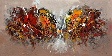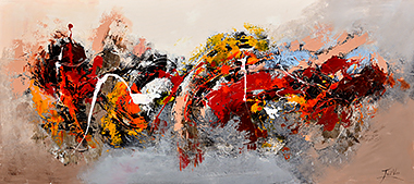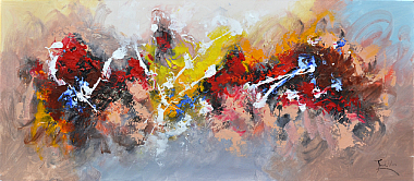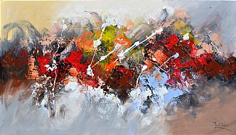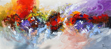 hij houdt ervan te experimenteren met kleuren en composities. Abstract,