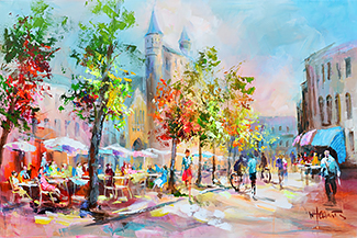 | NL - * 1940 Willem Haenraets, geboren te Heerlen op 9 oktober 1940 geboren in Heerlen. Zestien jaar oud, meldde hij zich aan bij de Academie Beeldende Kunsten Maastricht. 60er jaren Na 4 jaar won hij een beurs van de Belgische regering, om in Antwerpen aan het Hoger Nationaal Instituut voor Schone Kunsten te studeren, waar hij de beschikking had over een eigen atelier met model. Daar heeft hij zijn studie voltooid, in de Meesterklasse van professor Sarina (Atelier Opsomer) en professor Vaarten. Het was in die tijd, dat hij zijn eerste tentoonstelling hield. Van de opbrengst kocht hij een scooter, waarmee hij de hele omgeving afstruinde. Vooral bij de haven van Antwerpen werd veel geschilderd. Hier ontmoette hij een reder, die hem veel opdrachten bezorgde van allerlei mensen, in de vorm van portretten. Helaas, na een aantal jaren overleed de reder en vertrok hij naar Parijs, waar hij enkele maanden verbleef. Op Place du Têtre maakte hij van ‘s morgens tot ‘s nachts portretten, zodat hij na afloop een huis kon kopen in Bergen, Noord-Holland. Hier ging hij met zijn eerste vrouw Hannah wonen. In deze tijd stond hij vaak op kunstmarkten. Hij schilderde als een bezetene. Dramatisch genoeg verongelukte Hannah, hem achterlatend met een 6 weken oude dochtertje. 70er jaren Na een chaotische periode besloot hij terug te gaan naar Limburg. Hij verhuisde naar Kasteel Terworm in Heerlen en stortte zich op zijn werk. Veel originele schilderijen werden via een galerie in Amsterdam verkocht, anderen gingen naar Duitsland. Eind 70er jaren ontmoette hij zijn 2de vrouw, met haar dochtertje. Samen kregen zij nog een zoon. 80er jaren Halverwege de 80er jaren vatte hij het plan op om prints te laten maken van zijn schilderijen. Dit bracht een grote verandering met zich mee, zowel op financieel vlak als op het gebied van beurzen en exposities. Regelmatig ging hij op uitnodiging van uitgeverijen naar kunstbeurzen in de Verenigde Staten, Engeland en Duitsland. Hij deelde onder andere handtekeningen uit op stands in het Convention Center in Los Angelos en New York. Terwijl de lithografieën op de Expo werden getoond, werden originele schilderijen in een galerie op Rodeo Drive in Beverly Hills geëxposeerd. Doordat hij zoveel bekendheid verwierf, mede door het wereldwijd verspreiden van de prints, kwam er een uitnodiging uit Japan, om in Nagoya een expositie van zijn schilderijen te houden. Dit werd een groot succes. De Japanners waren vooral gecharmeerd van zijn romantische taferelen en zachte kleuren. 90er jaren In deze periode werd hij benaderd door een galeriehouder in Maastricht. Met hem heeft hij